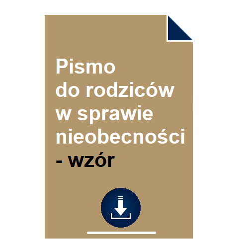 Dla ułatwienia Ci sporządzenia takiego dokumentu – przygotowaliśmy spełniający wszystkie formalne wymagania – wzór pisma do rodziców w sprawie nieobecności – który pobierzesz, klikając poniższy przycisk: