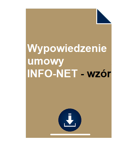 Opracowany przez nas wzór wypowiedzenia umowy INFO-NET pozwala w bardzo prosty i szybki sposób rozwiązać umowę z dostawcą usług. Druk w formacie PDF lub DOC wystarczy wypełnić, podpisać i przesłać lub złożyć osobiście.